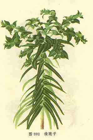 2. 水肿。用续随子一两,去壳,研细,压去油,再研细,分作七付,每治一人有一付。男子有酒下,女子用荆芥汤下。五更现服,不久,腹泻,但天大亮后泻自停。可另服厚朴汤补身体,习盐、醋一在昊,病即不复发。